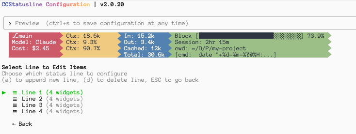 Enter ccstatusline. I’d seen it mentioned in the Claude Code community, tried it once months ago with the default settings, and... promptly forgot about it. Big mistake.
